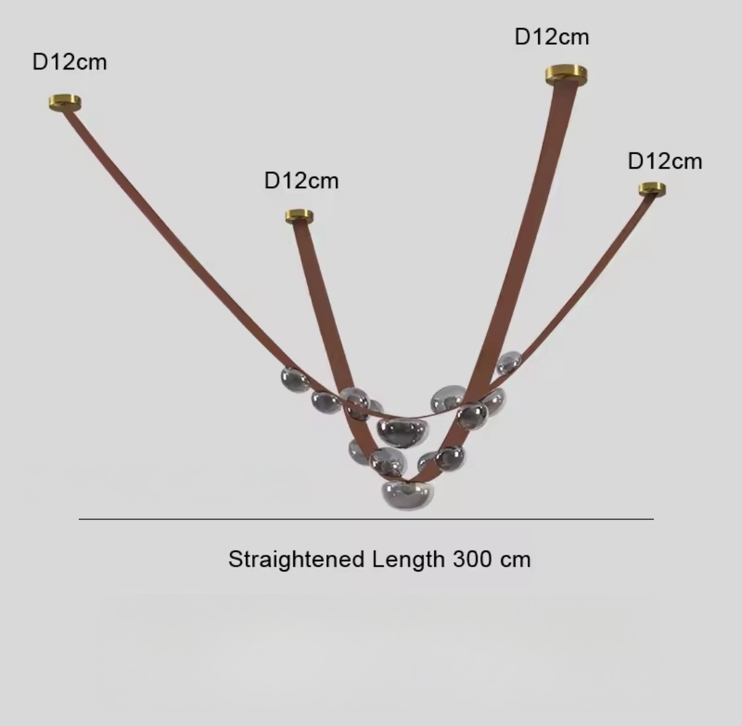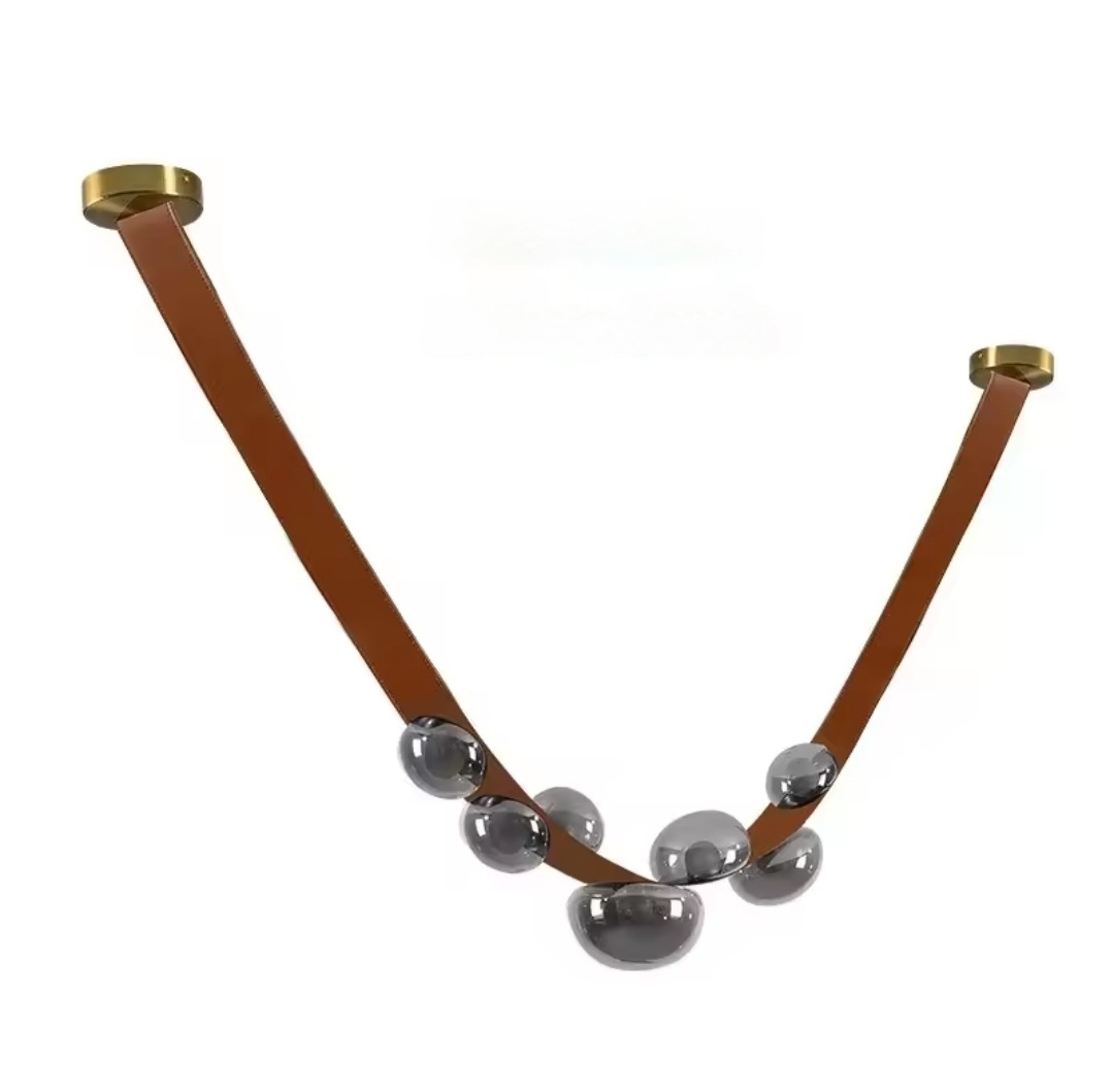 A BOOME függőlámpa egy karakteres, modern design lámpa, amely a bőr eleganciáját ötvözi az üveg lágy fényjátékával. A lámpatest különlegessége a bőrrel bevont, íves szerkezet, amelyről különböző méretű üvegbúrák helyezkednek el, így dinamikus és látványos megjelenést biztosít minden térben.