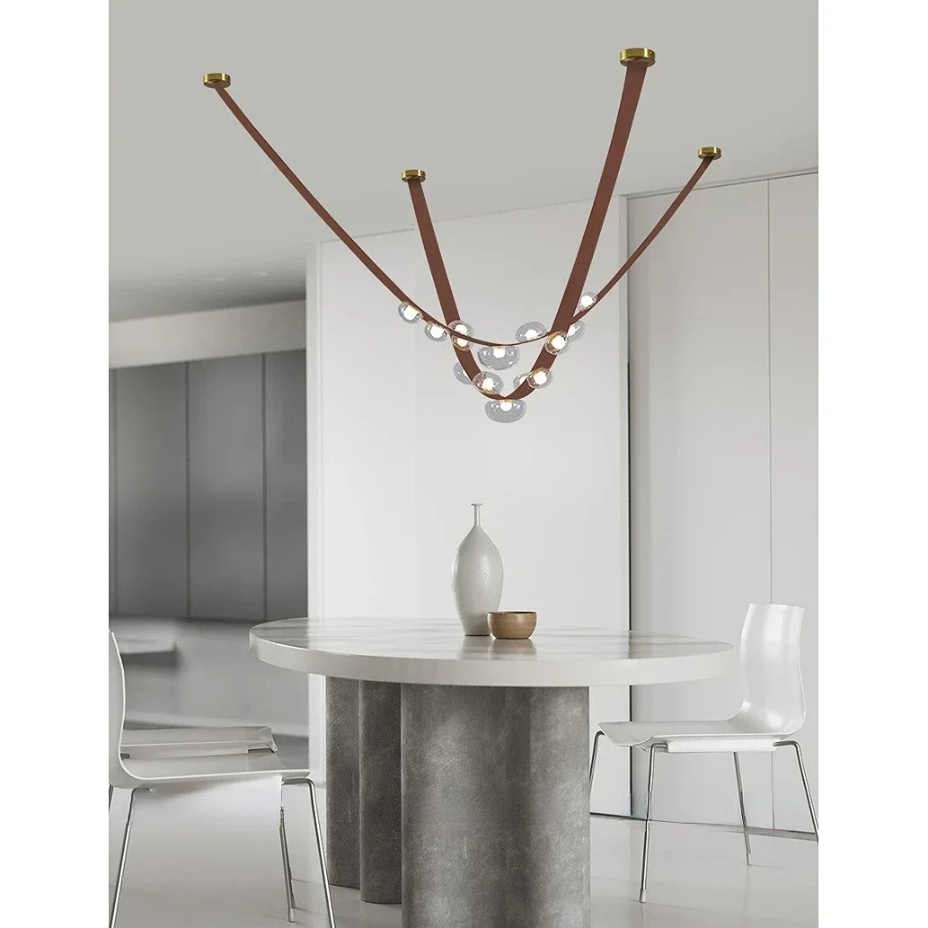 BOOME függeszték – barna bőr design lámpa üvegbúrákkal