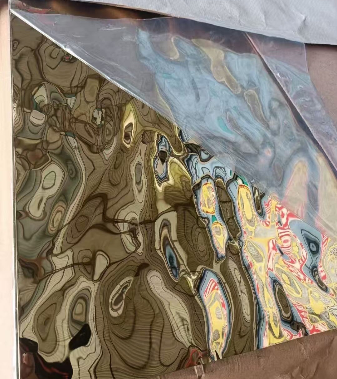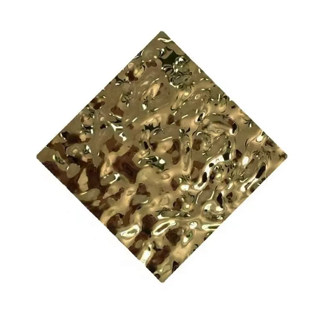 A Pezsgő arany 3D Vízfodros Dekorpanel a modern enteriőrök egyik leglátványosabb, legexkluzívabb burkolata. A panel prémium rozsdamentes acélból készül, melynek felületén mély, hullámzó „vízfodros” 3D mintázat fut végig. Ez az organikus, dinamikus felület a fényt gyönyörűen töri meg, így a fal vagy mennyezet szinte mozgásban lévő, élettel teli hatást kelt.